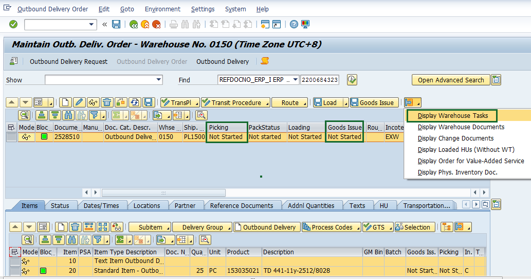 2) The delivery is distributed in EWM system and can be seen in PRDO
