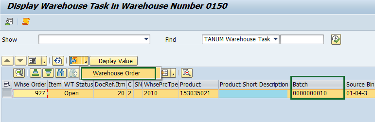 It can be observed that in storage bin 01-04-3, two batches are available. So, we will try to change batch 0000000010 to batch 0000000036 in Warehouse task during confirmation.